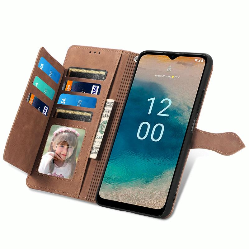 For Nokia G22 Embossed Flower Zipper Leather Phone Case(Brown)