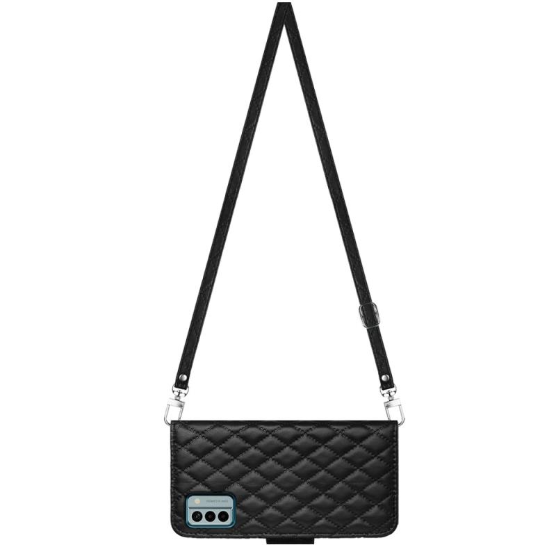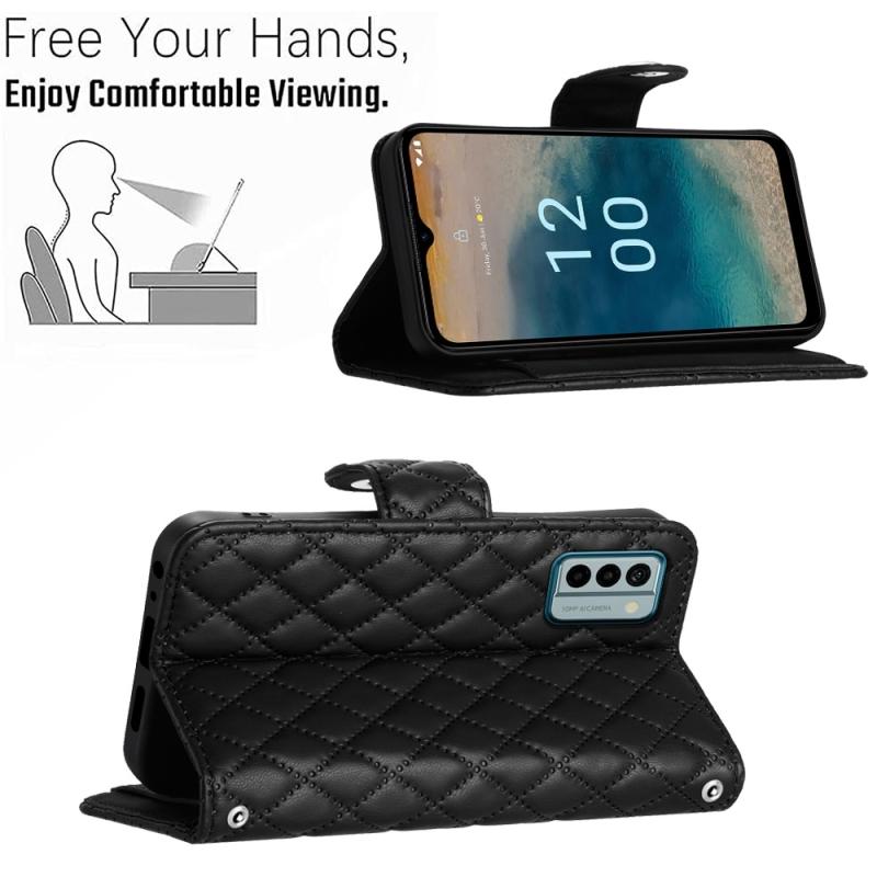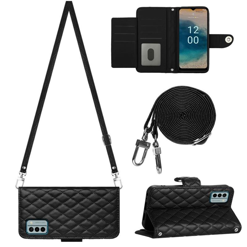 For Nokia G22 Rhombic Texture Flip Leather Phone Case with Long Lanyard(Black)