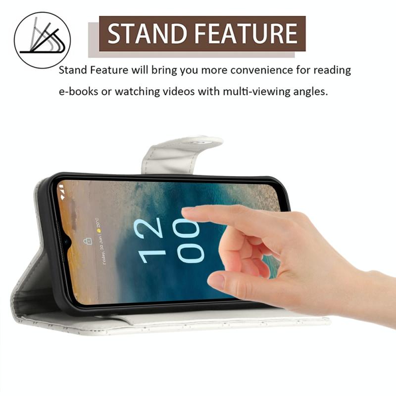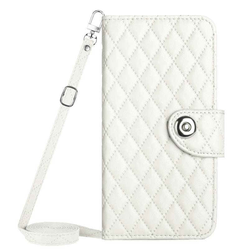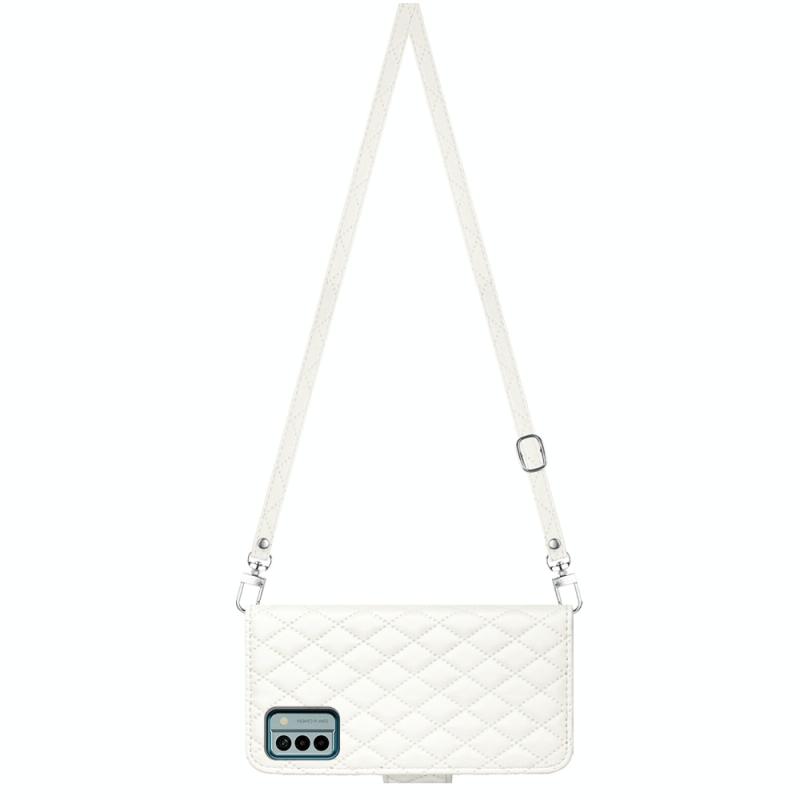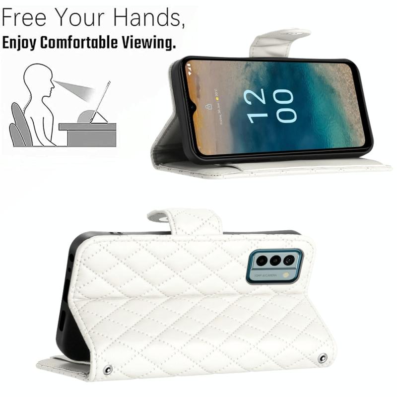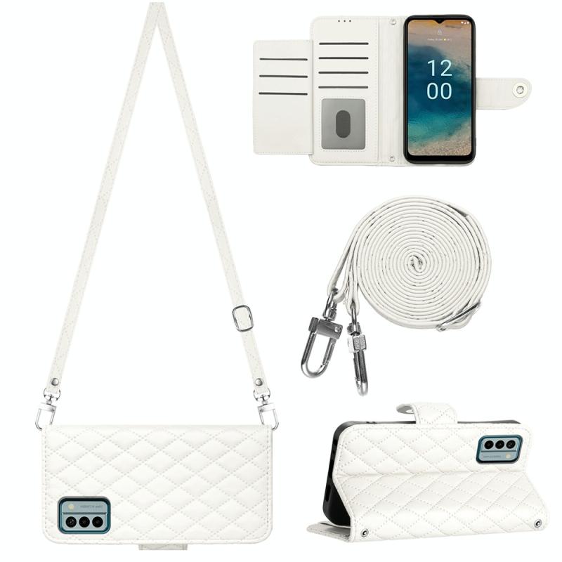 For Nokia G22 Rhombic Texture Flip Leather Phone Case with Long Lanyard(White)