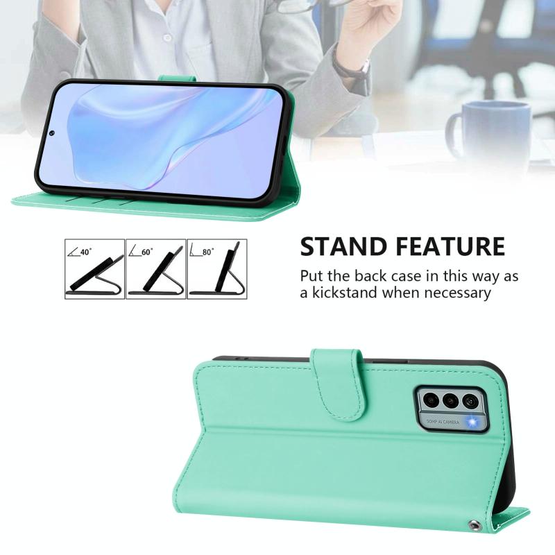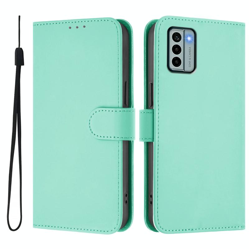 For Nokia G22 Skin Feel Solid Color Leather Phone Case with Lanyard(Mint Green)
