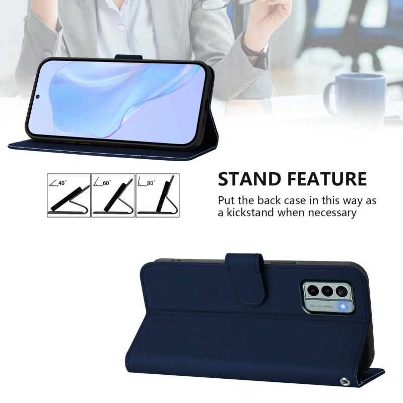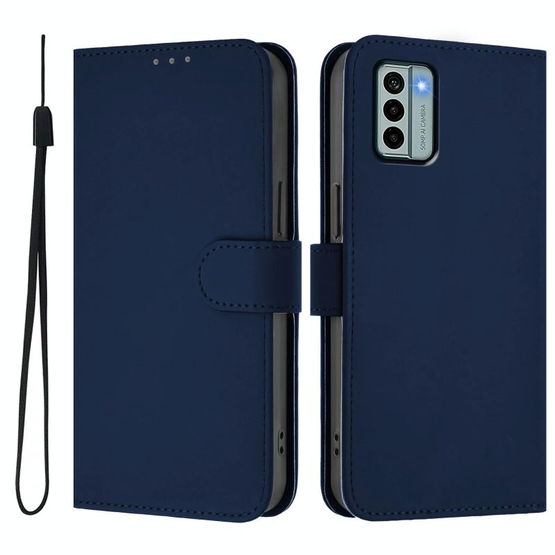 For Nokia G22 Skin Feel Solid Color Leather Phone Case with Lanyard(Navy Blue)