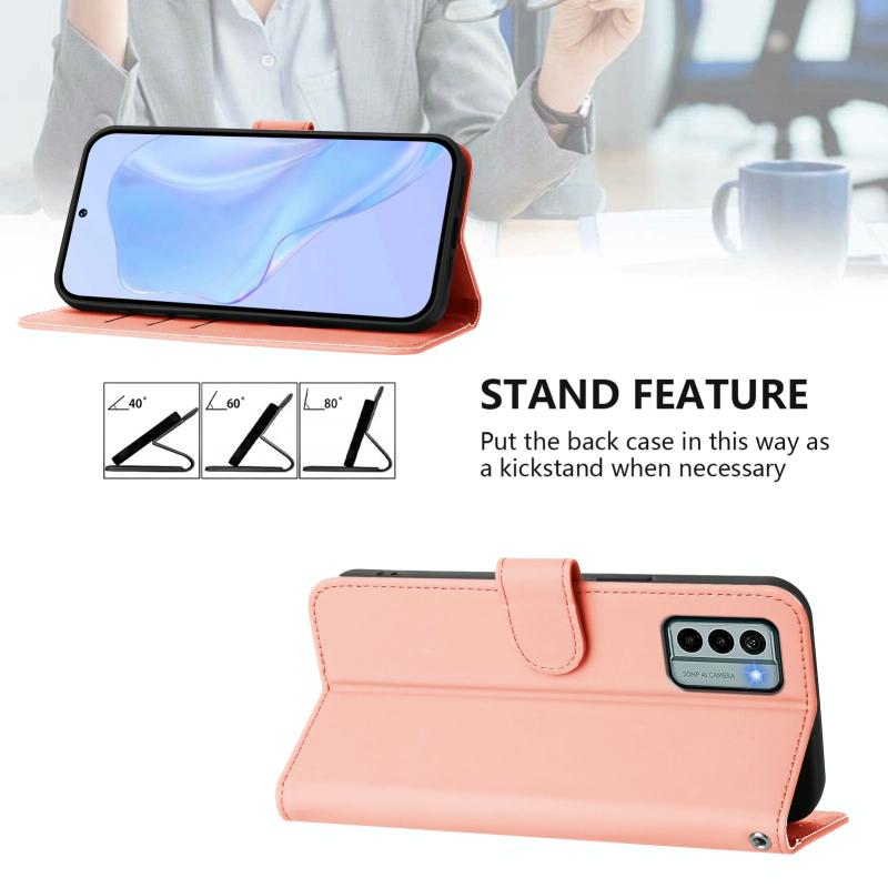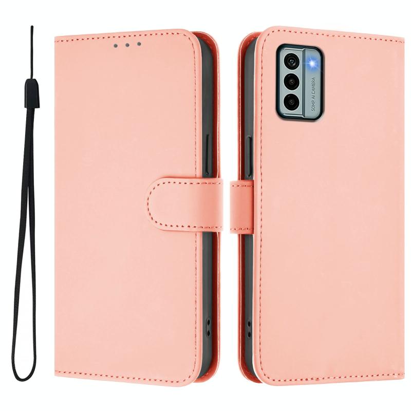 For Nokia G22 Skin Feel Solid Color Leather Phone Case with Lanyard(Pink)