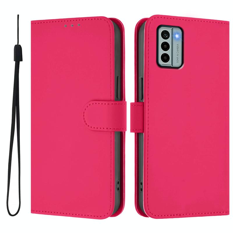 For Nokia G22 Skin Feel Solid Color Leather Phone Case with Lanyard(Rose Red)