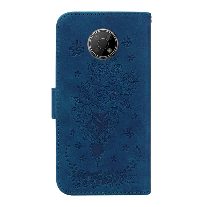 For Nokia G300 Butterfly Rose Embossed Leather Phone Case(Blue)