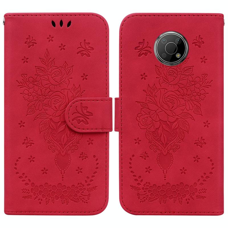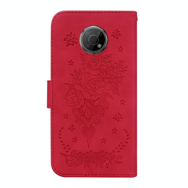 For Nokia G300 Butterfly Rose Embossed Leather Phone Case(Red)