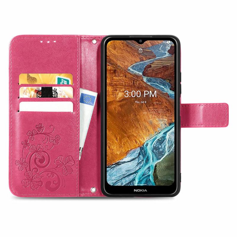 For Nokia G300 Four-leaf Clasp Embossed Buckle Leather Phone Case(Magenta)