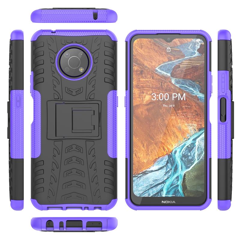 For Nokia G300 Tire Texture TPU + PC Phone Case with Holder(Purple)