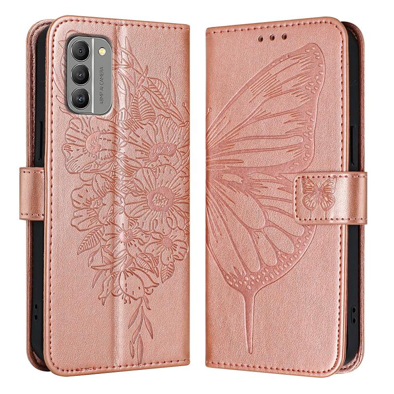 For Nokia G400 Embossed Butterfly Leather Phone Case(Rose Gold)