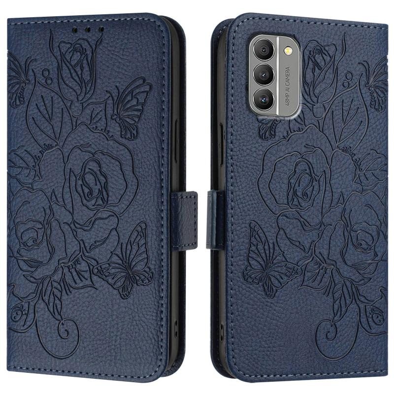 For Nokia G400 Embossed Rose RFID Anti-theft Leather Phone Case(Dark Blue)