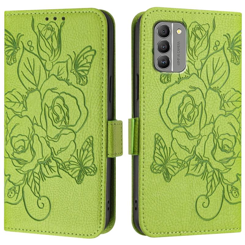 For Nokia G400 Embossed Rose RFID Anti-theft Leather Phone Case(Green)
