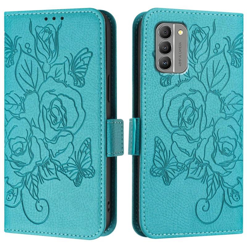 For Nokia G400 Embossed Rose RFID Anti-theft Leather Phone Case(Light Blue)