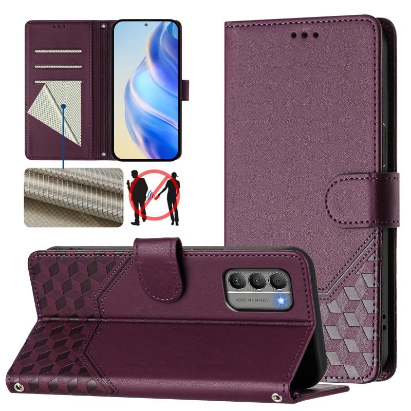For Nokia G400 Honeycomb Embossing RFID Leather Phone Case(Violet)
