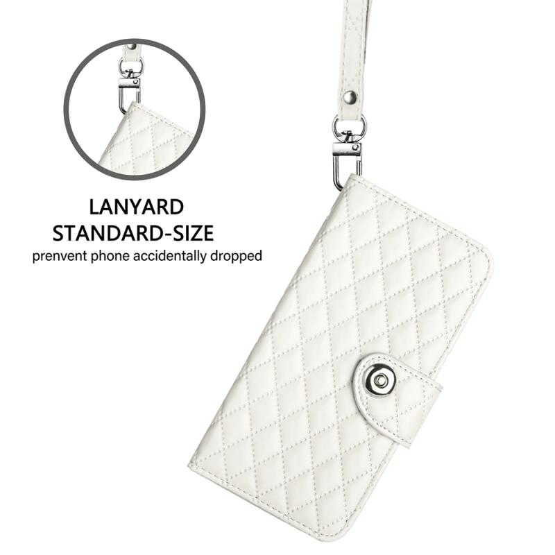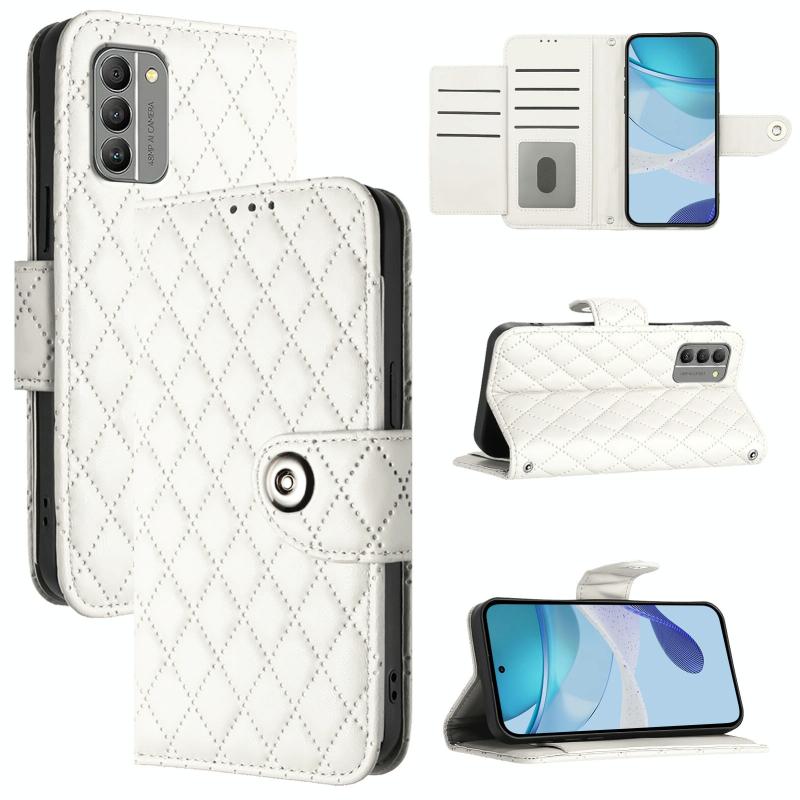 For Nokia G400 Rhombic Texture Flip Leather Phone Case with Lanyard(White)