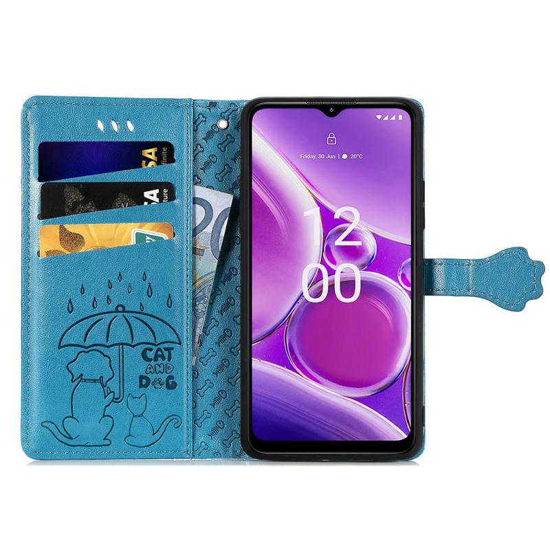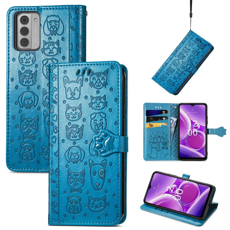 For Nokia G42 Cat and Dog Embossed Leather Phone Case(Blue)
