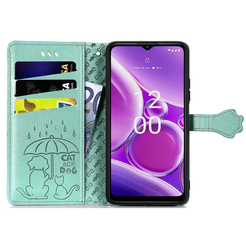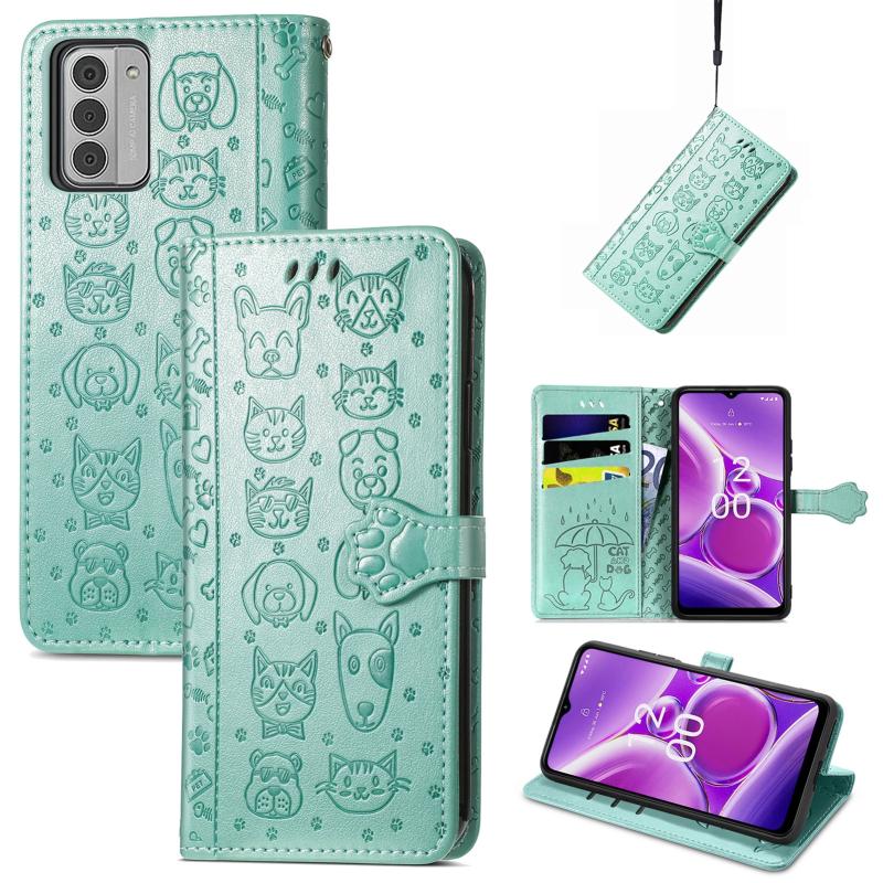 For Nokia G42 Cat and Dog Embossed Leather Phone Case(Green)