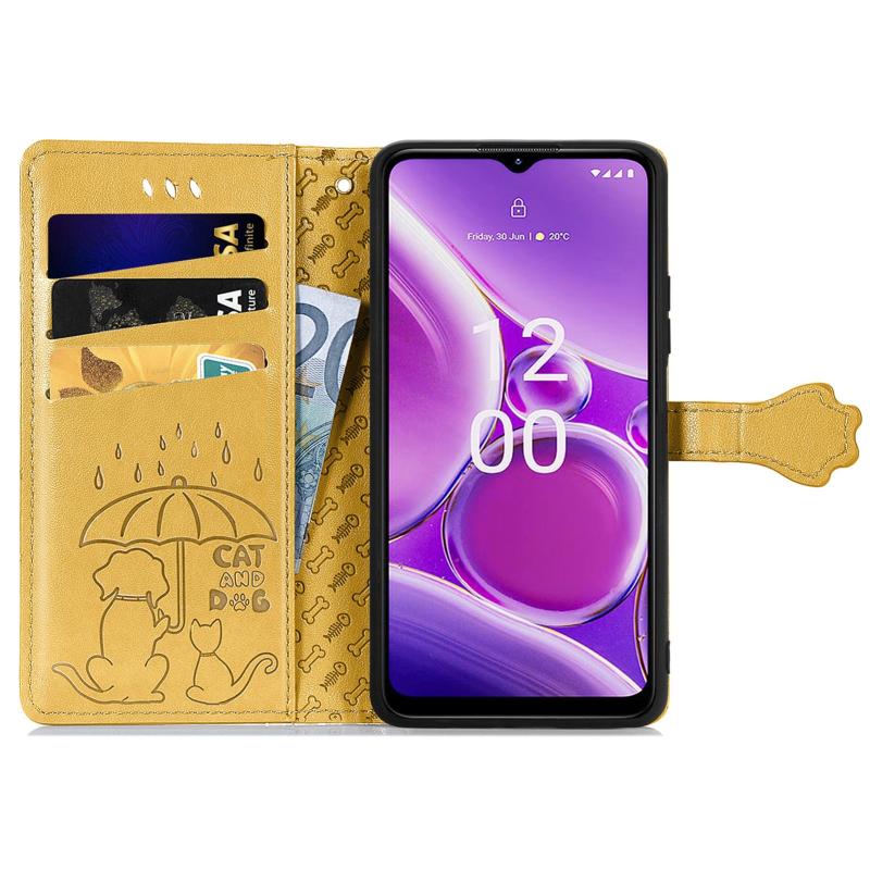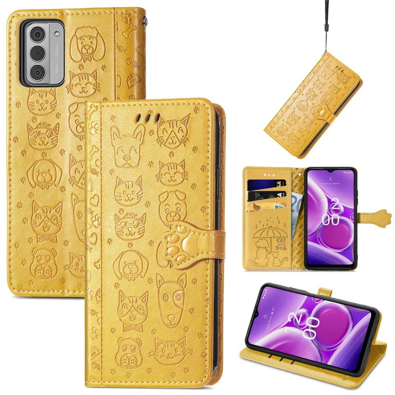 For Nokia G42 Cat and Dog Embossed Leather Phone Case(Yellow)