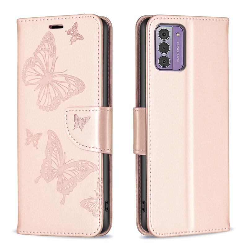 For Nokia G42/G310 Embossing Two Butterflies Pattern Horizontal Flip PU Leather Case(Rose Gold)