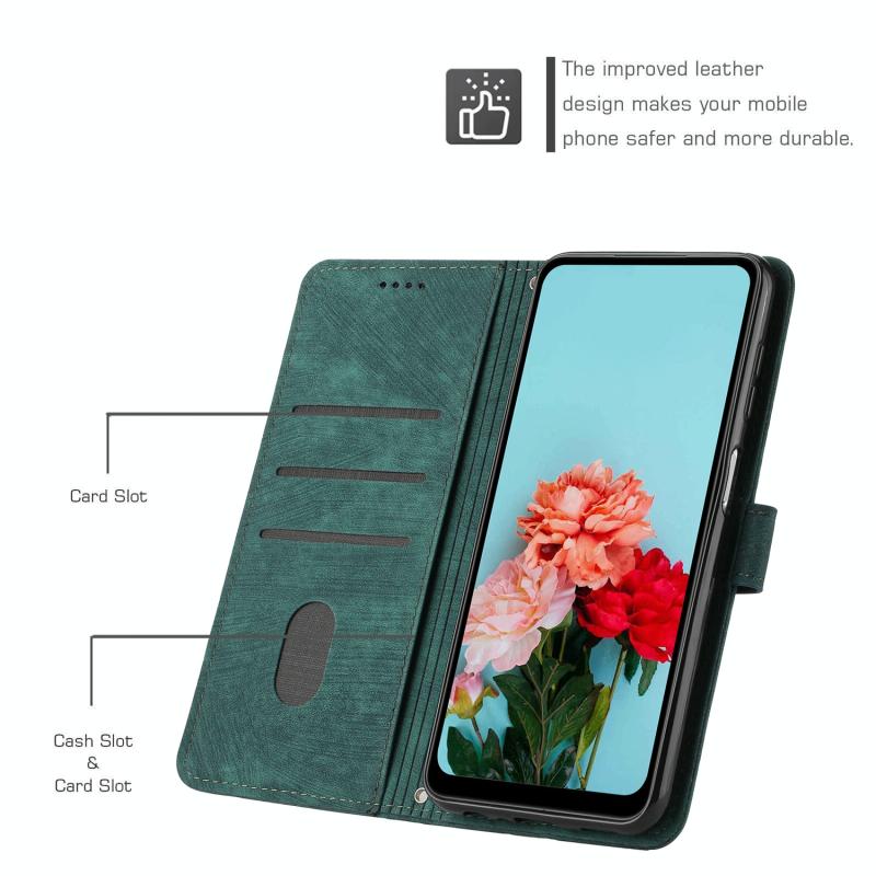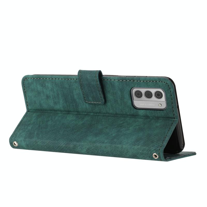 For Nokia G42 Skin Feel Stripe Pattern Leather Phone Case with Lanyard(Green)