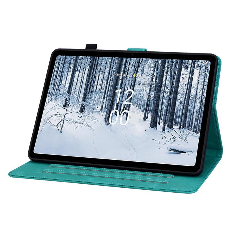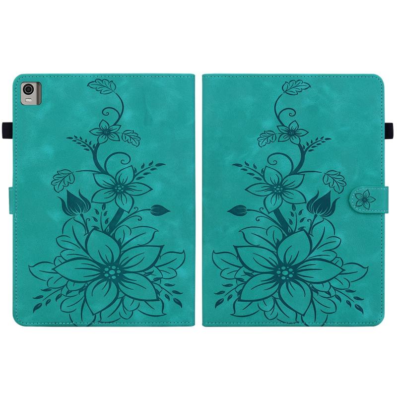 For Nokia T10 Lily Embossed Leather Tablet Case(Green)