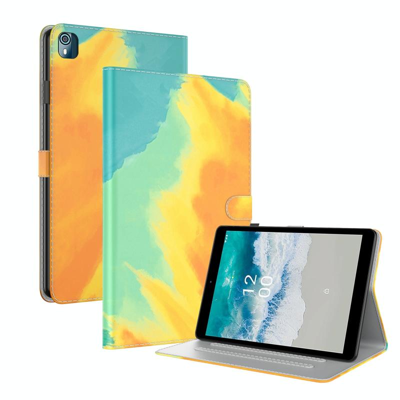 For Nokia T10 Watercolor Pattern Flip Leather Tablet Case(Autumn Leaves)