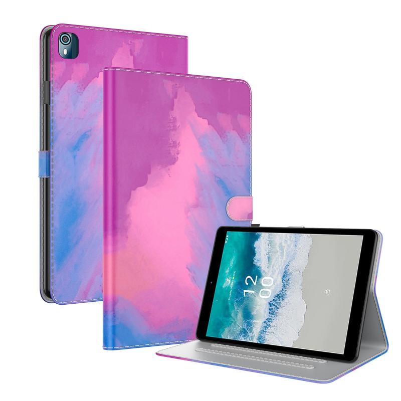 For Nokia T10 Watercolor Pattern Flip Leather Tablet Case(Purple Red)