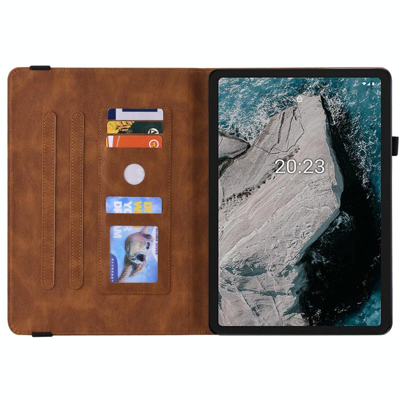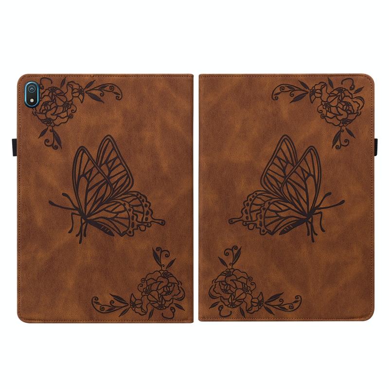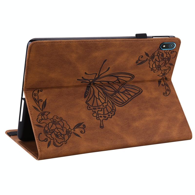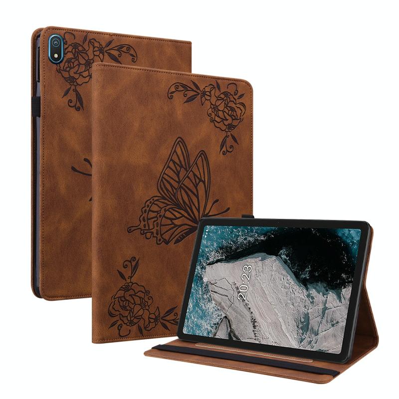 For Nokia T20 Butterfly Flower Embossed Leather Tablet Case(Brown)