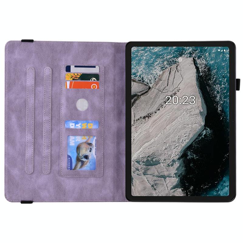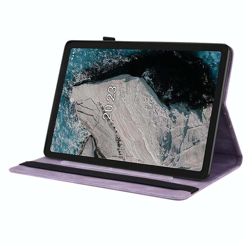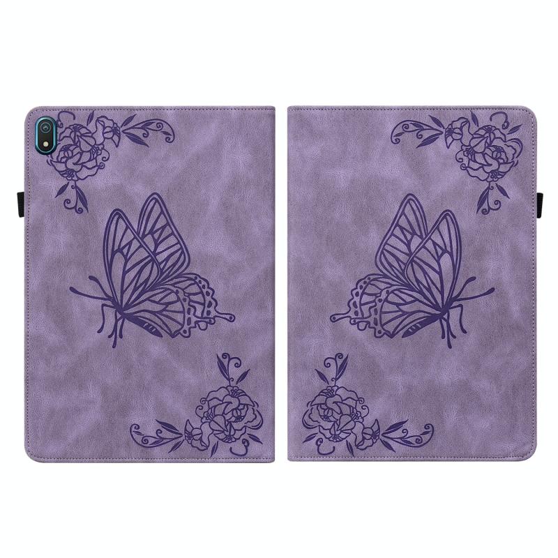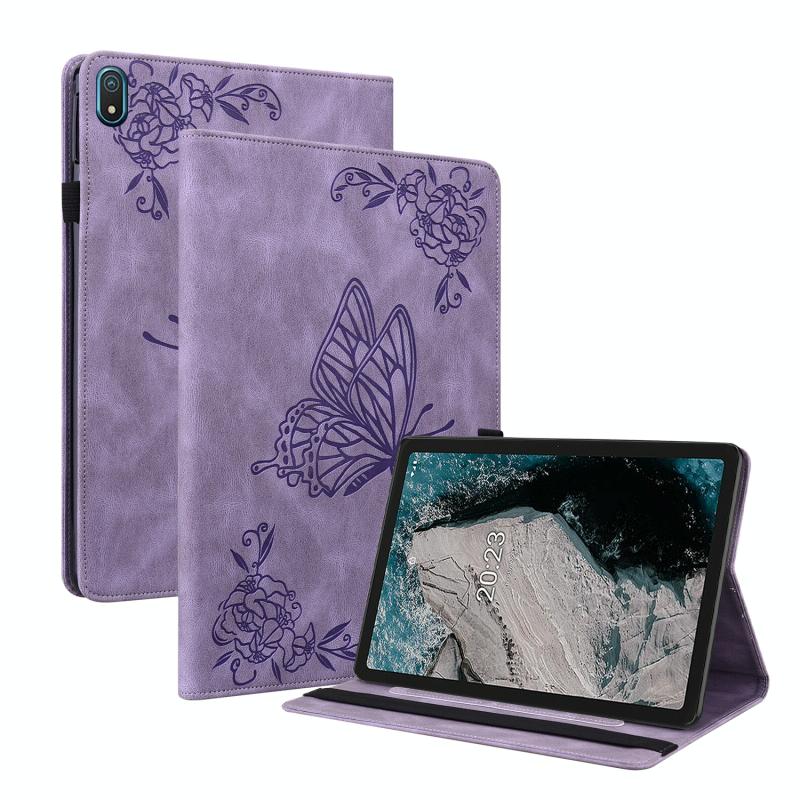 For Nokia T20 Butterfly Flower Embossed Leather Tablet Case(Purple)