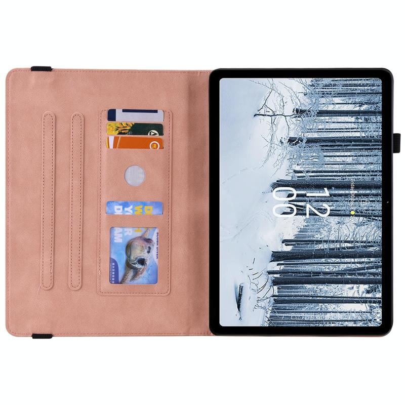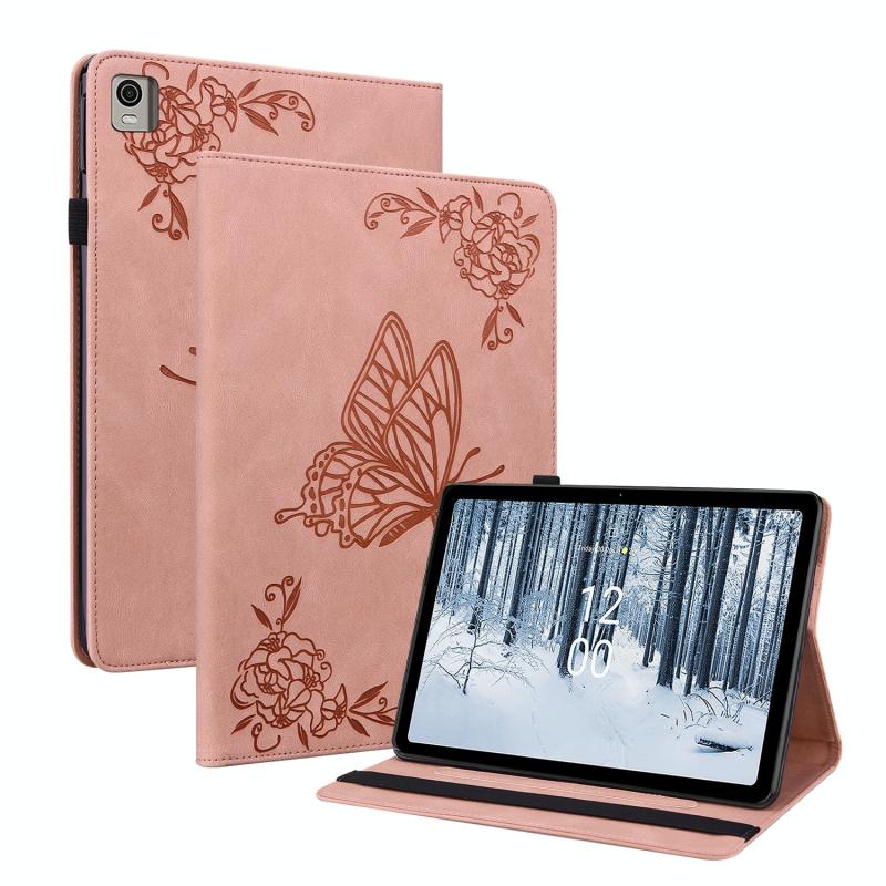 For Nokia T21 Butterfly Flower Embossed Leather Tablet Case(Rose Gold)