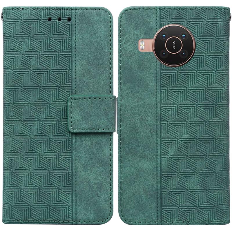 For Nokia X10 / X20 Geometric Embossed Leather Phone Case(Green)