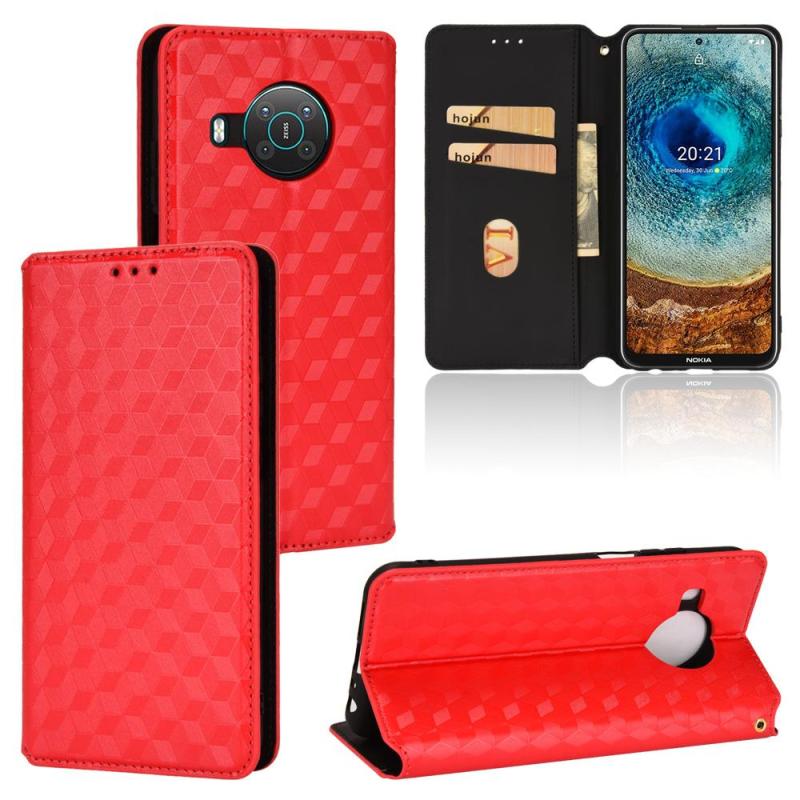 For Nokia X10 / X20 / X100 Cubic Grid Texture Flip Leather Phone Case(Red)