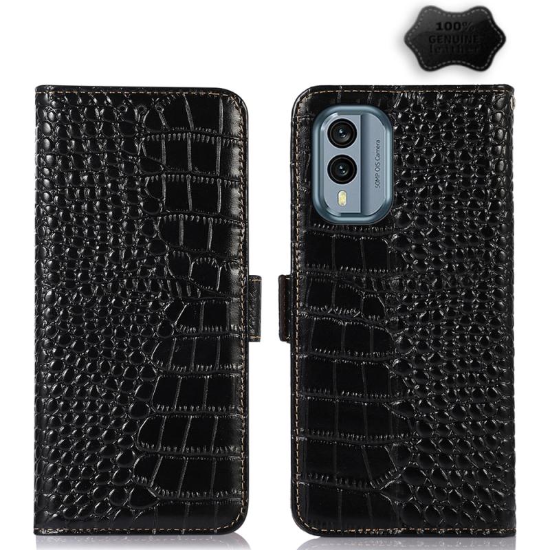 For Nokia X30 5G Crocodile Top Layer Cowhide Leather Phone Case(Black)