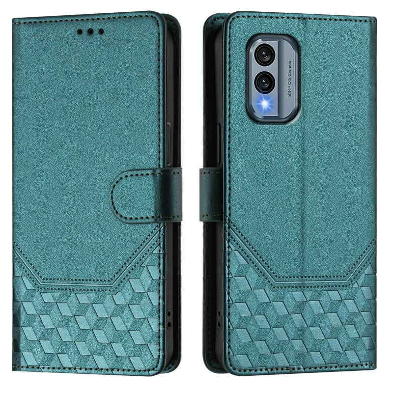 For Nokia X30 5G Honeycomb Embossing RFID Leather Phone Case(Peacock Green)