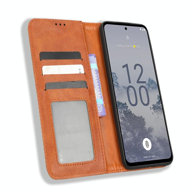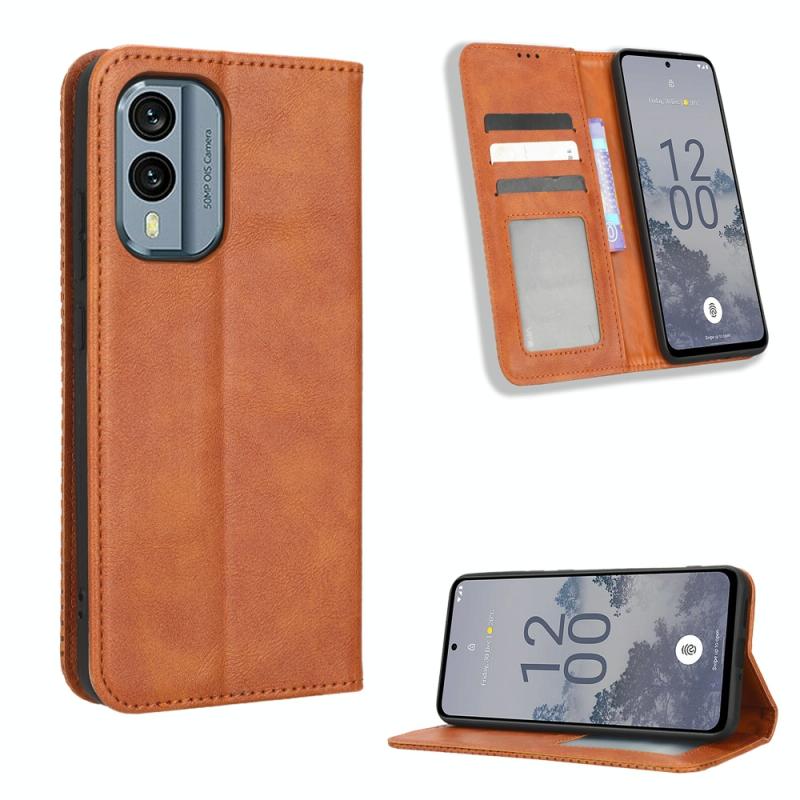 For Nokia X30 5G Magnetic Buckle Retro Texture Leather Phone Case(Brown)