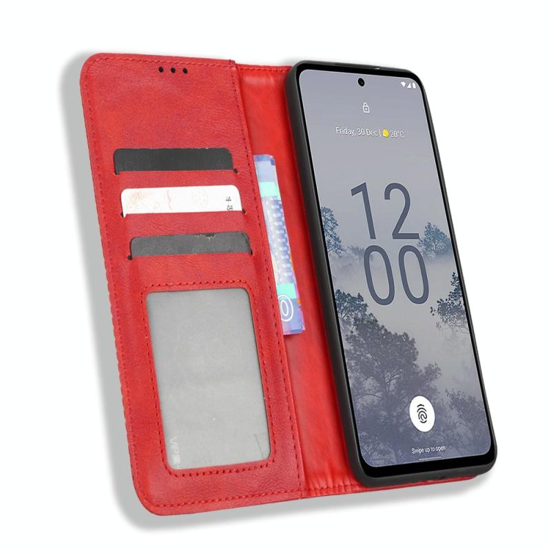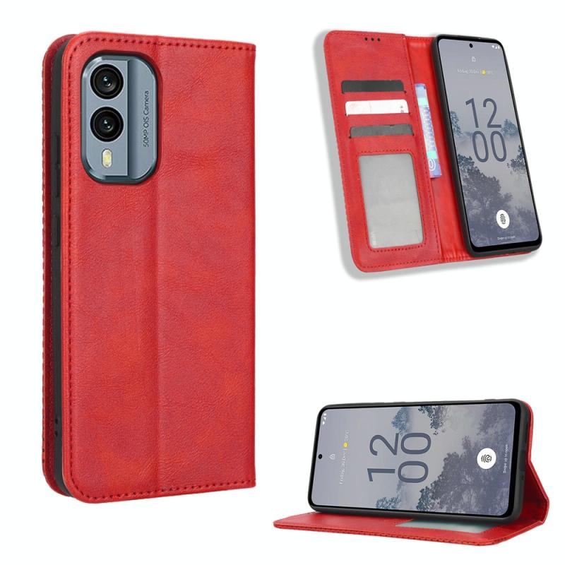 For Nokia X30 5G Magnetic Buckle Retro Texture Leather Phone Case(Red)