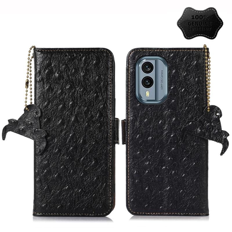For Nokia X30 5G Ostrich Pattern Genuine Leather RFID Phone Case(Black)