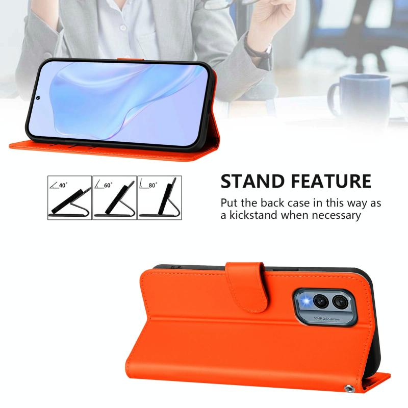 For Nokia X30 5G Skin Feel Solid Color Leather Phone Case with Lanyard(Orange)