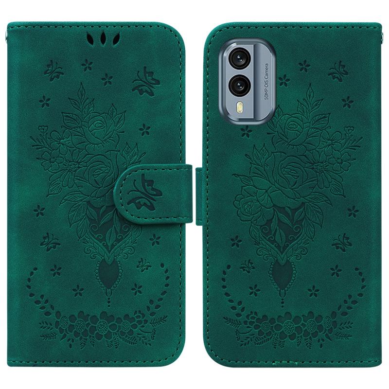 For Nokia X30 Butterfly Rose Embossed Leather Phone Case(Green)