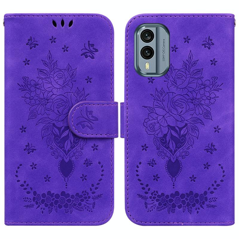 For Nokia X30 Butterfly Rose Embossed Leather Phone Case(Purple)