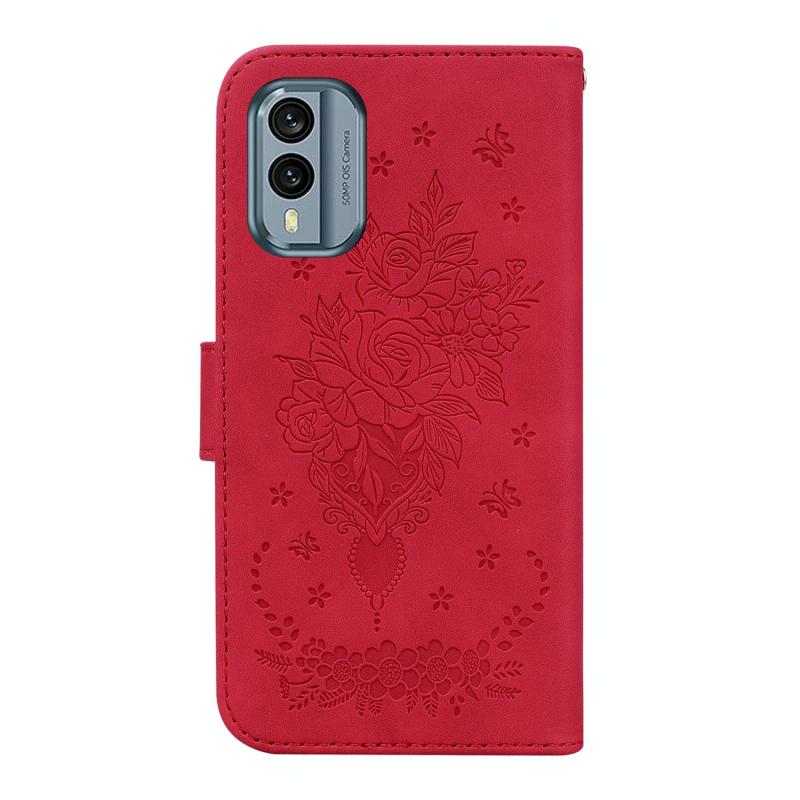 For Nokia X30 Butterfly Rose Embossed Leather Phone Case(Red)