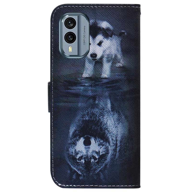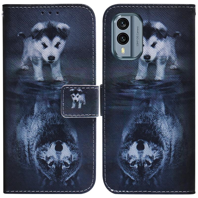 For Nokia X30 Coloured Drawing Flip Leather Phone Case(Wolf and Dog)