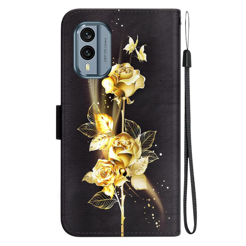For Nokia X30 Crystal Texture Colored Drawing Leather Phone Case(Gold Butterfly Rose)