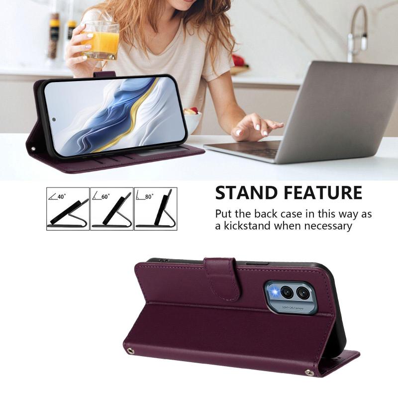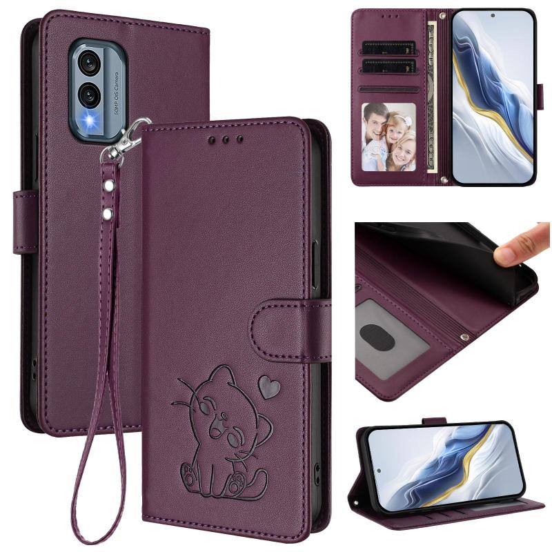 For Nokia X30 Embossed Heart Cat Leather Phone Case with Hand Strap(Dark Purple)
