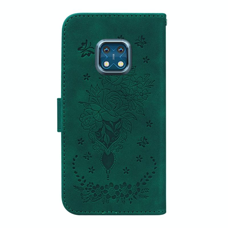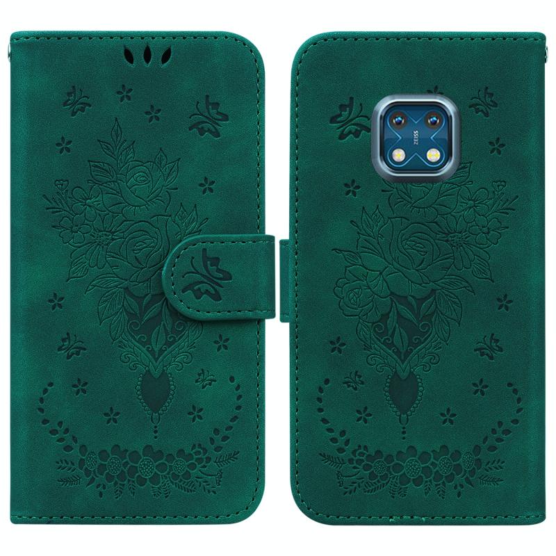 For Nokia XR20 Butterfly Rose Embossed Leather Phone Case(Green)
