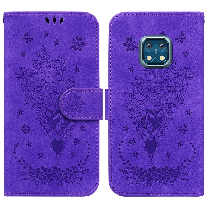 For Nokia XR20 Butterfly Rose Embossed Leather Phone Case(Purple)