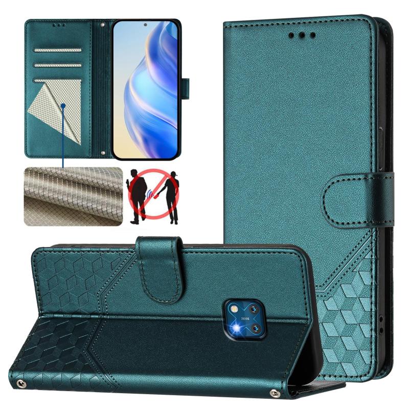 For Nokia XR20 Honeycomb Embossing RFID Leather Phone Case(Peacock Green)