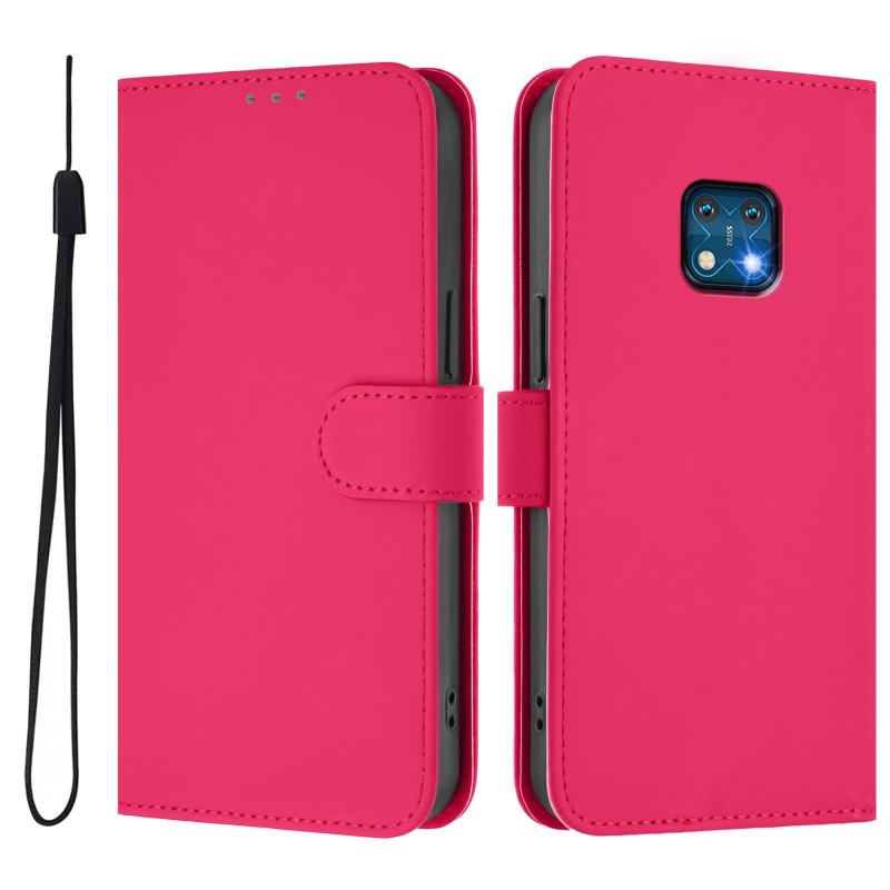 For Nokia XR20 Skin Feel Solid Color Leather Phone Case with Lanyard(Rose Red)