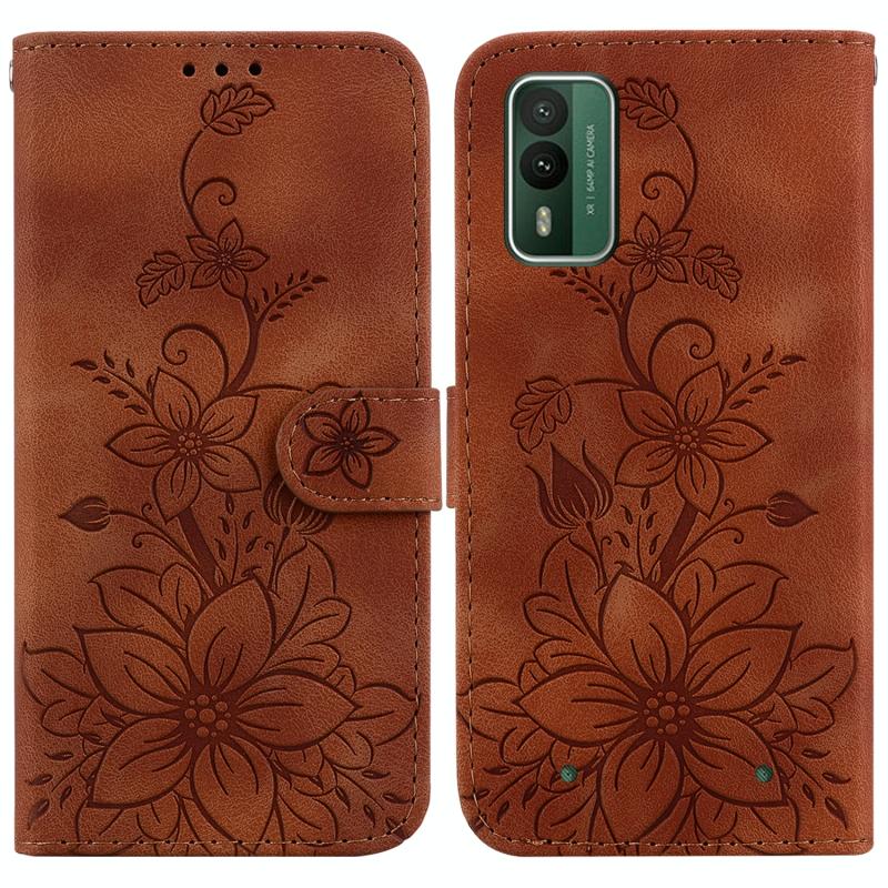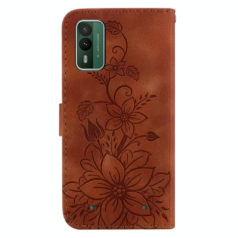 For Nokia XR21 Lily Embossed Leather Phone Case(Brown)