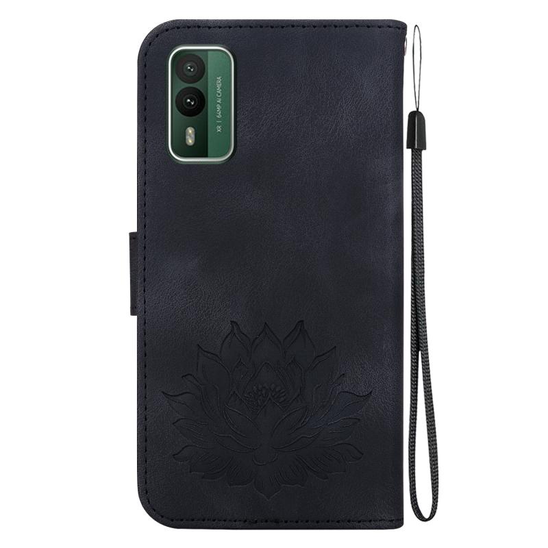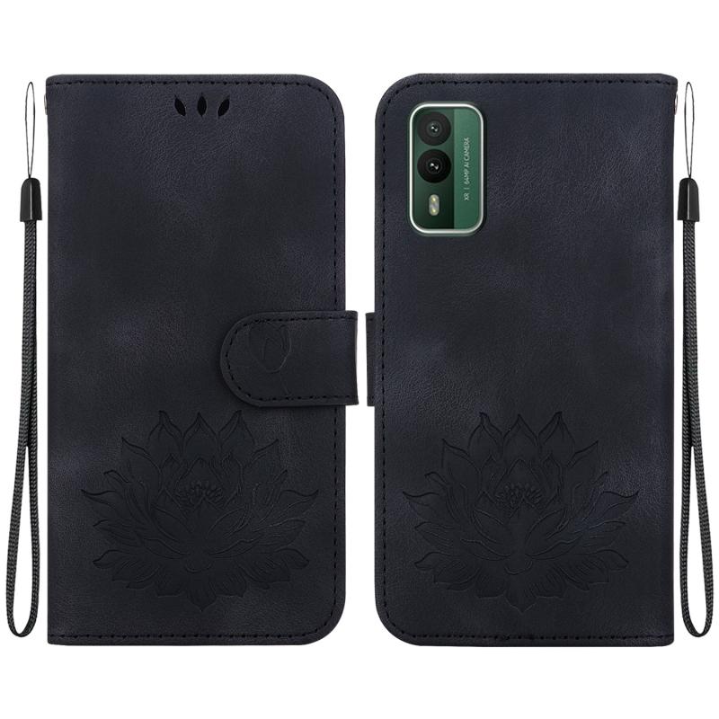 For Nokia XR21 Lotus Embossed Leather Phone Case(Black)