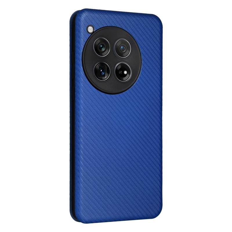 For OnePlus 12 Carbon Fiber Texture Flip Leather Phone Case(Blue)