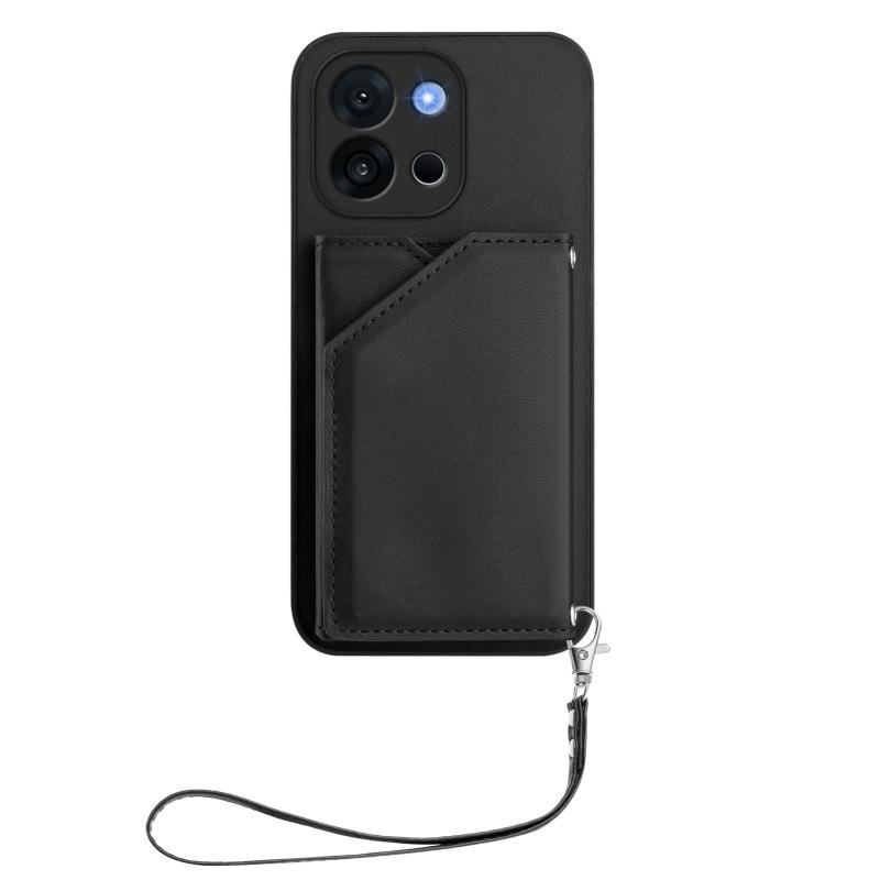 For OnePlus 13T Skin Feel Four Card Slots Phone Case with Wrist Strap(Black)
